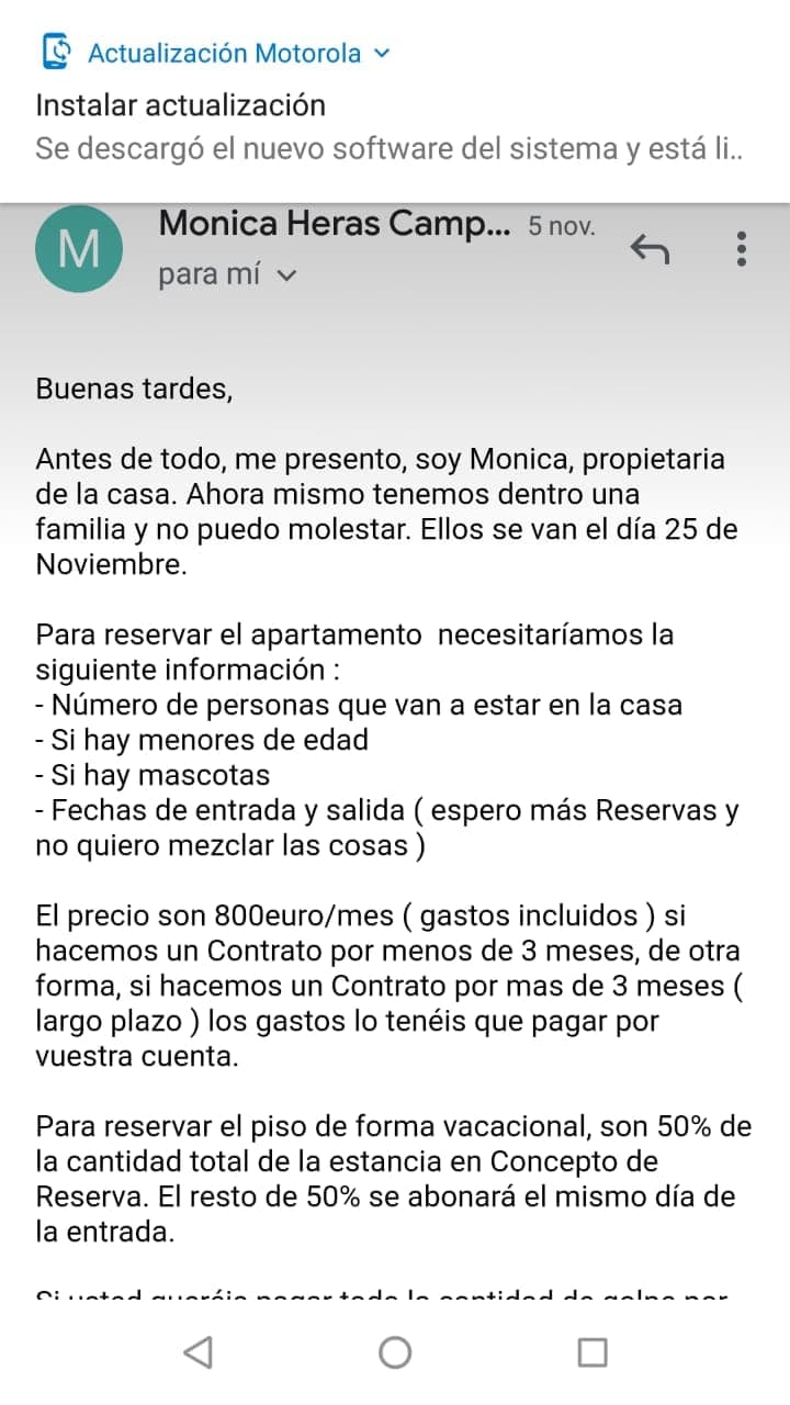 A més, alerta que tenen amics propers als quals la mateixa dona “els ha escrit i els ha dit que a partir del 15 de desembre el té disponible”. De fet, també apunta que “xerrant amb una altra persona a ells sí que els havien estafat amb el mateix contracte però diferent identitat”.