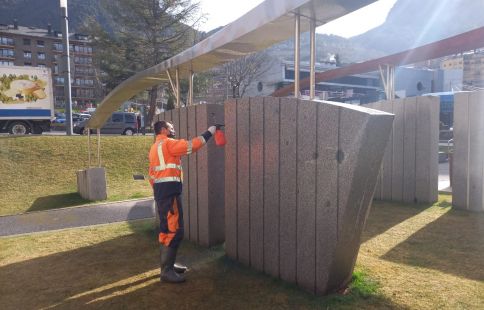 Aquest mateix matí operaris del comú d’Encamp ja han començat a netejar alguns dels espais embrutats per la improvisada pintura de matinada. En alguns dels elements de mobiliari i embelliment de la mateixa plaça dels Arínsols, ja s’havien pràcticament eliminat les pintades amb què ahir al matí es va llevar la parròquia.