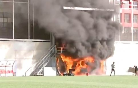 El foc s’ha declarat cap a les quatre de la tarda i, de fet, ha enganxat en directe canals de televisió anglesos que estaven fent la prèvia del partit. Justament, serien uns treballs de soldadura que s’estarien fent per preparar la plataforma de cara al duel contra la selecció britànica el que haurien desencadenat tot plegat. Una guspira hauria encès el cautxú que hi ha a la gespa a la zona i el foc s’ha estès ràpidament.