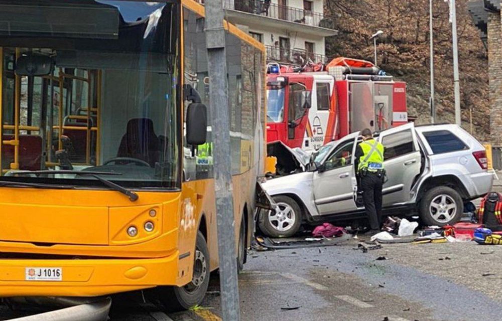 El tot terreny va col·lidir amb un clípol que estava aturat a la parada. Tots els viatgers van resultar il·lesos. Els quatre ocupants del vehicle van ser traslladats a l'hospital on després d'una primera revisió es va decidir ingressar-los. La dona va anar a l'UCI i aquest dijous al matí el seu estat és estable. Un menor ha estat donat d'alta mentre que una noia va ser operada d'una fractura a l'humer i un home està pendent d'una intervenció al maluc.