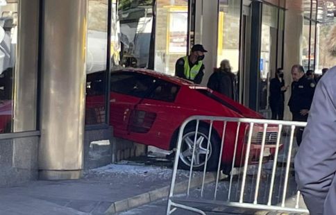 Els fets han tingut lloc pels volts de les dotze del migdia. Un Ferrari de matrícula andorrana, que circulava en sentit Sant Julià ha perdut el control, ha trepitjar la vorera i ha picat amb un fanal. Sense poder redreçar el rumb, ha acabat tombant cap al cantó contrari de la via, travessant sense topar amb cap altre vehicle i s’ha encastat en un dels aparadors del centre comercial.