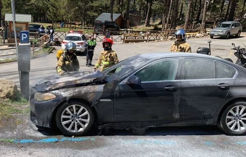 L’incident ha ocorregut una estona després del punt del migdia. Els agents de circulació que han acudit en un primer moment al lloc han descarregat els seus extintors sobre el vehicle però no ha estat suficient per poder sufocar les flames mentre esperaven l’arribada dels bombers. Una vegada els agents del cos de salvament i extinció d’incendis han arribat a l’aparcament en poca estona han pogut resoldre l’incident i l’ensurt.