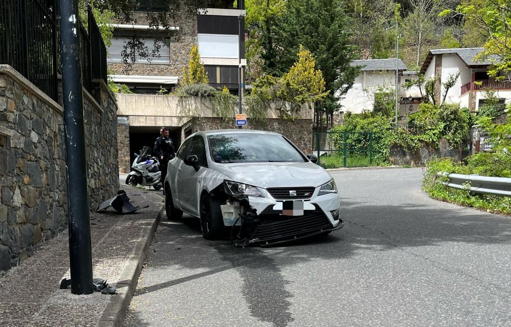 El petit accident, més aparatós que una altra cosa i que ha obligat entre altres la policia a desplaçar-se fins a la zona, ha tingut lloc a l’encreuament del carrer Prat Guillemó, una mena de coll estret i on el conductor, per causes que no han transcendit, ha ‘envestit’ un senyal de trànsit que ha enviat enmig del carrer. El cop ha causat danys notables al vehicle, on hi anava també un segon ocupant.