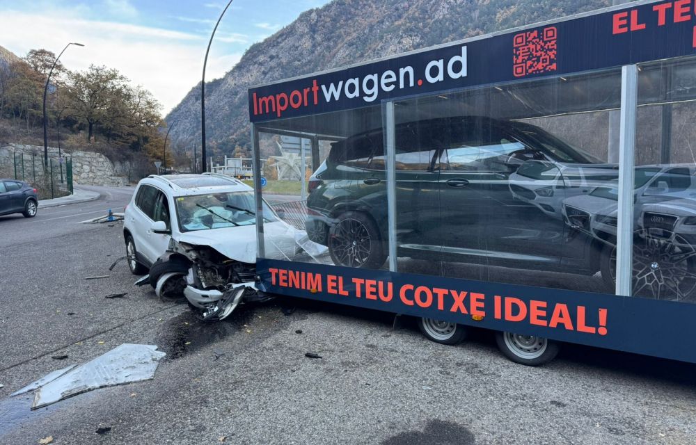 L’accident ha ocorregut de ben segur aquesta matinada a la cruïlla que porta cap a la urbanització de la Margineda, amb els centres escolars com a una de les referències, just a la sortida, en direcció cap a Espanya, de la mal anomenada ‘rotonda del cacauet’. L’impacte ha hagut de ser important. Però l’ocupant o ocupants del vehicle, matriculat a l’Estat espanyol, no es deuen haver fet gran cosa perquè han pogut marxar i res se sap d’ells.