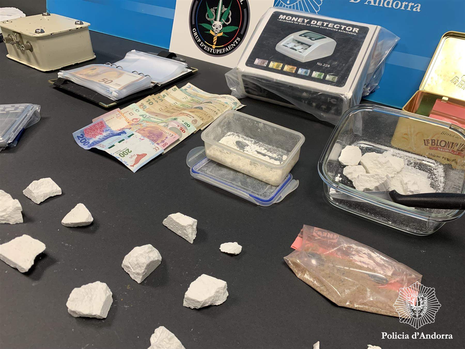 I és que a banda de la droga comissada, que és molta per a un indret com Andorra, els agents van comissar una màquina per comptar bitllets, cinc bàscules de precisió i estris destinats al tràfic d’estupefaents. L’estocada al mercat hivernal de venda de droga al Pas de la Casa és molt important. I és que a part de la cocaïna, tant en roca com en dosis preparades per a la venda, també es van segrestar quantitats destacades d’altres estupefaents: 26 grams de metamfetamina, 342 grams d’haixix, 70 grams de marihuana i alguna petita quantitat d’èxtasi.