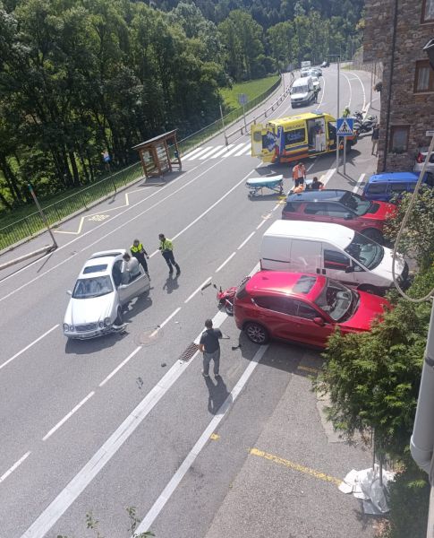 Pràcticament a l’altura d’una parada de bus al marge dret de la carretera pujant i d’un establiment hoteler a l’esquerra, un cotxe amb matrícula del Principat que mirava de tombar cap a l’esquerra aparentment ha col·lidit contra la moto. L’impacte ha estat força virulent i el pilot del vehicle de dues rodes ha sortit disparat uns quants metres abans de tocar a la calçada. Malgrat tot, i una vegada traslladat el pilot de la moto a l’hospital, la revisió que se li ha fet no ha permès detectar res de gravetat més enllà de les contusions de caràcter lleu i una vegada acabat d’atendre se li ha donat l’alta hospitalària.