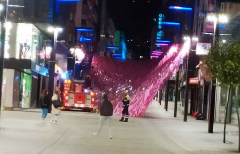 L’incident, sense conseqüències, no ha passat de ser un petit ensurt que, això sí, ha obligat a mobilitzar tant els bombers, que s’han encarregat de gestionar la situació, com agents del servei de circulació, que vetllaven perquè els bombers poguessin fer la seva tasca. El motiu decoratiu era de plàstic, i tot i que l’acumulació de material, en caure com un sac, s’hauria deixat sentir si hagués enxampat algú, tampoc no tenia la perillositat d’altres materials.