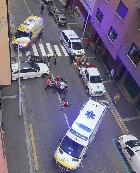 El sinistre ha ocorregut sobre 2/4 de 7 de la tarda. Ambulàncies del SUM i de transport sanitari, atestats de la policia i agents de circulació escaldencs han estat atenent la víctima, que restava conscient i parlava. Ha estat traslladat cap a l’hospital per ser atès de les ferides patides mentre una grua s’enduia la moto accidentada i es requeria la presència dels bombers per netejar la calçada.