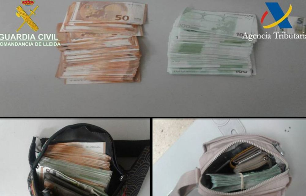 La primera actuació de la Guàrdia Civil es va donar cap a les 13:00 h, quan va accedir un cotxe marca Mini amb matrícula espanyola pel carril verd “res a declarar”. A l’interior hi havia quatre persones, dues de les quals van manifestar que sí que portaven diners en efectiu. En total, 39.560 euros a l’interior de dues bosses. Es tracta d’un home i una dona amb domicili en Barcelona.