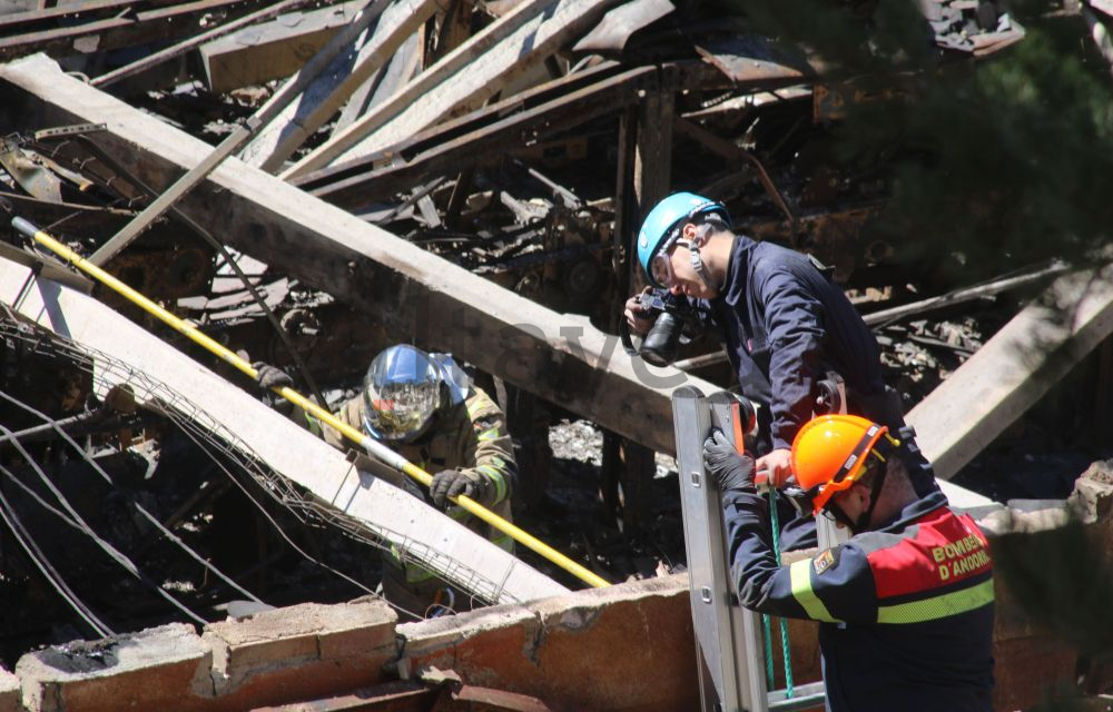 De moment, tot el recinte derruït, amb excepció d’aquelles activitats que encara necessitin fer els bombers, quedarà precintat fins que la Batllia no digui què s’ha de fer. De fet, l’informe que li serà transmès, signat de manera conjunta per tots els especialistes públics intervinents, serà la base perquè l’autoritat judicial adopti les decisions que escaigui. Com l’entrega de l’edifici a la propietat. Per ara està clar que aquest pas no es donarà perquè els bombers encara no donen l’incendi totalment per extingit. Queden alguns punts calents. Això sí, la situació està totalment controlada però el vent continua dificultant poder apagar del tot el foc en somort que queda.