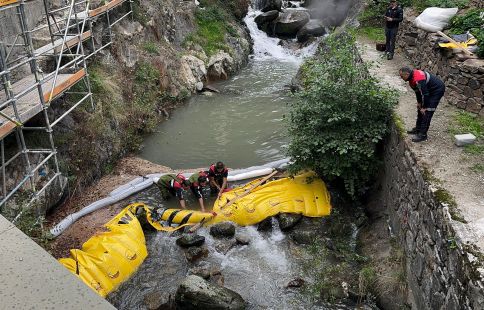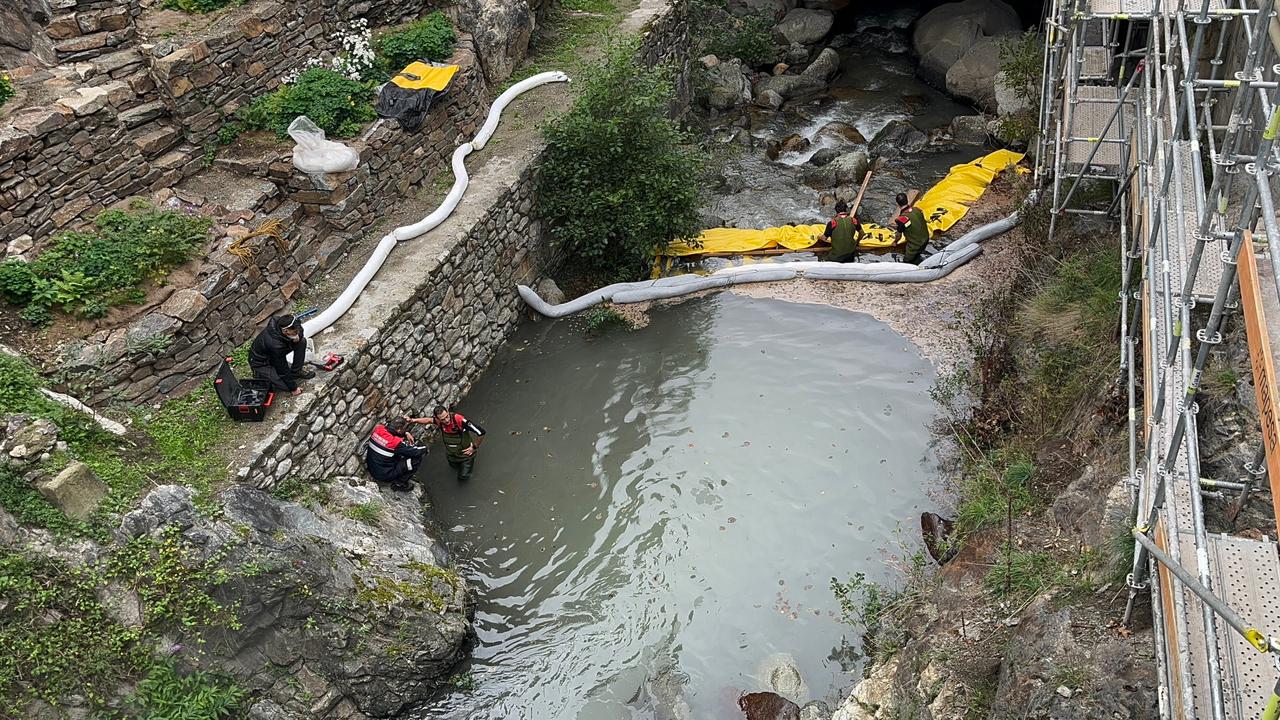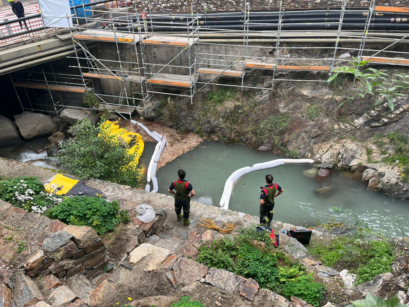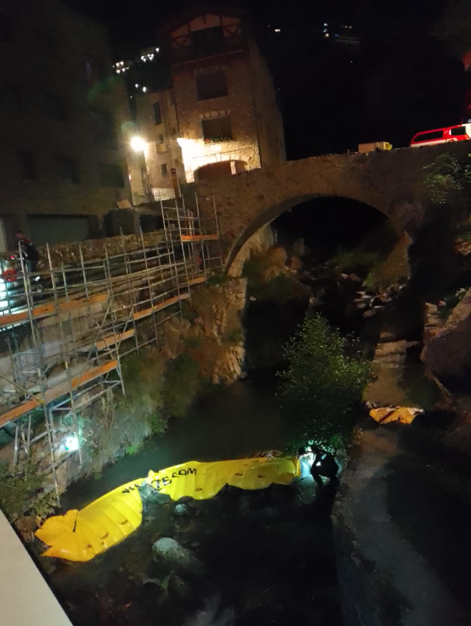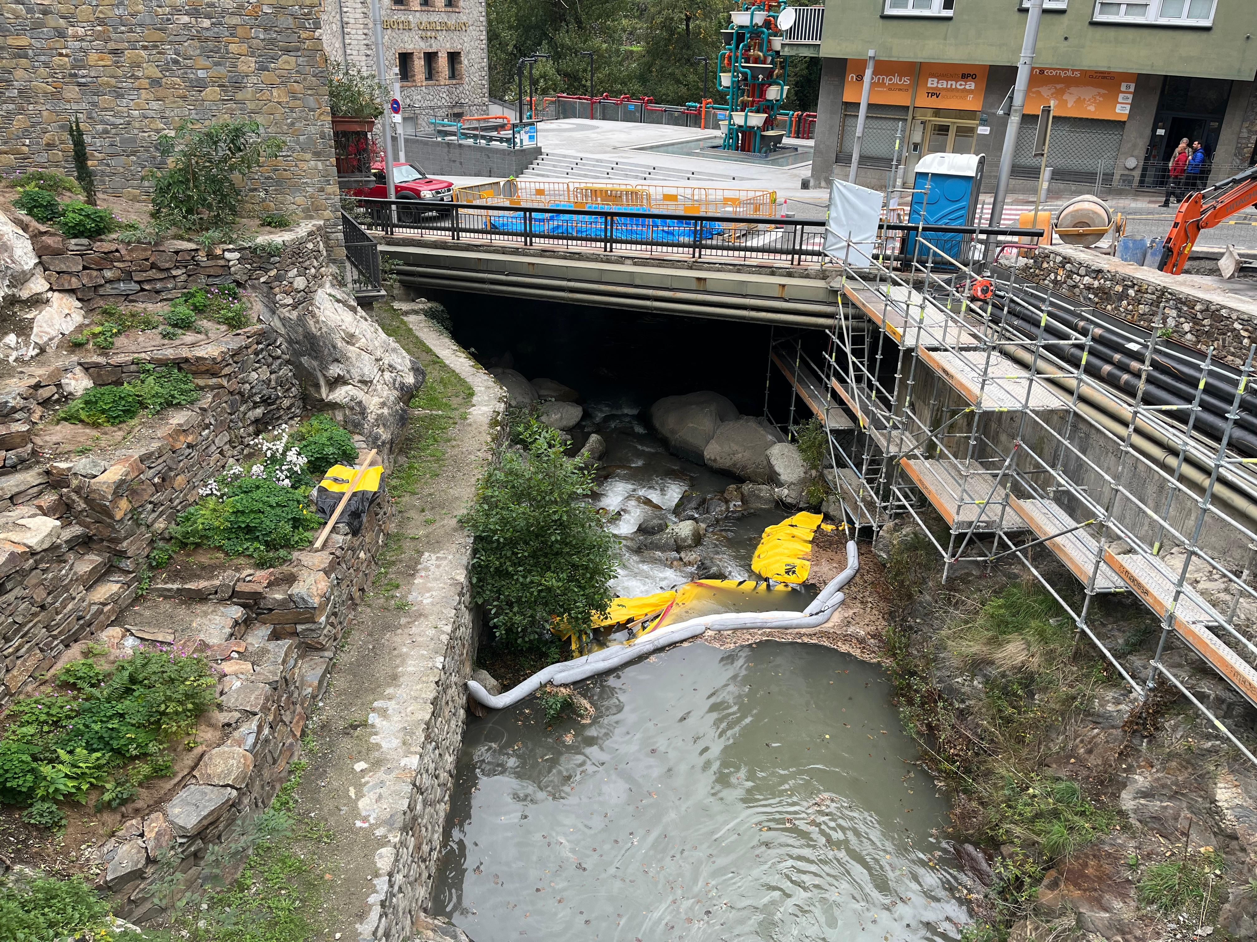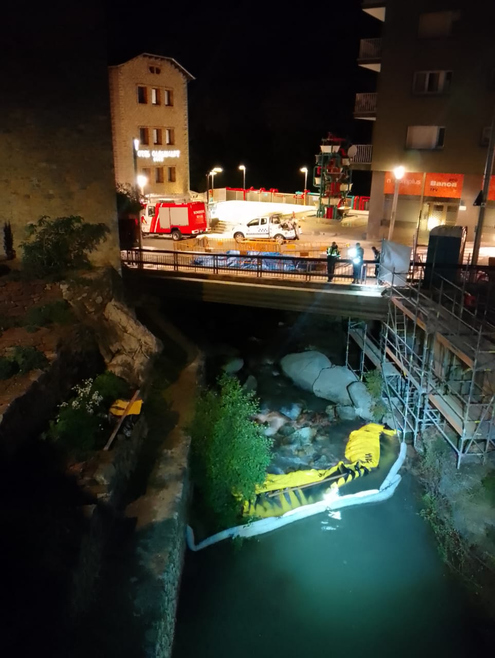 Els bombers van pujar un tram però la foscor i les condicions de la zona feien perilloses certes maniobres. Per tant, tenint en compte que era clar que l’origen del vessament s’havia de trobar riu Madriu amunt, els bombers van fer una mena de bassa a tocar del pont de la Tosca, amb la utilització d’un equipament tècnicament denominat ‘watergate’ i unes barres absorbents. Amb tot, abans ja havia passat carburant riu avall i aquest matí les restes del fuel són ben visibles i es deixen olorar en zones com el Centre de Negoci d’Andbank a Escaldes o al Parc Central, per posar dos exemples.