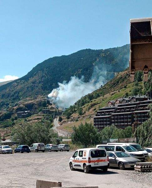 L’avís s’ha rebut de seguida al cos de bombers, que s’ha mobilitzat. Un camió des de la caserna de Canillo ha estat el primer a arribar al lloc i a actuar. Més tard, tres des de Santa Coloma. I, especialment, un helicòpter, que ha fet passades contínues llançant aigua contínuament sobre la zona de les flames. Un altre vehicle aeri ha servit de comandament.