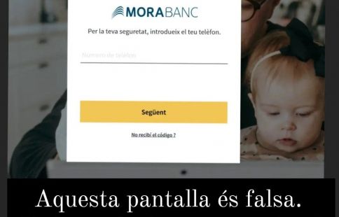 L’entitat bancària ha alertat aquest dilluns que “encara detectem webs falses que volen suplantar la pàgina de la banca online de MoraBanc”. De fet, la setmana passada, ja exposava el cas d’una pàgina que sortia com a patrocinada a Google imitant l’aparença del web real per intentar captar les dades dels usuaris.