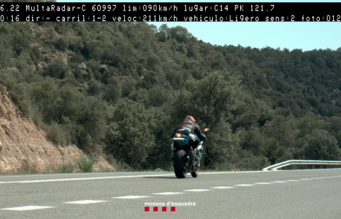 Diumenge els mossos d’esquadra van establir un control a la C-14, al terme municipal d’Oliola, a Noguera. En aquest tram, limitat a 90 km/h, van interceptar una motocicleta amb matrícula andorrana a 211 km/h. Un cop aturat es va procedir a denunciar al conductor per un delicte contra la seguretat viària per circular a una velocitat penalment punible. Quan sigui requerit s’haurà de personar davant el jutjat de Balaguer.