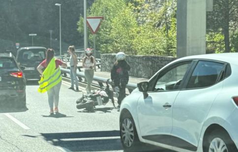 Una moto ha sofert un accident poc abans de les 2 de la tarda just abans d’arribar a la rotonda del túnel dels Dos Valires, a la parròquia de la Massana. La moto, en què hi viatjaven dues noies que sortosament no haurien sofert danys de rellevància, circulava en sentit descendent en un moment de força intensitat circulatòria a la zona.