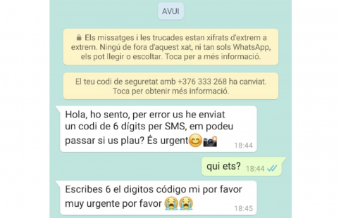 “Hola, ho sento, per error un he enviat un codi de 6 digits per SMS, em podeu passar si us plau? És urgent”, és un dels missatges que estan rebent molts usuaris. Davant d’això, la parapública recomana eliminar l’SMS i no enviar, en cap cas, els números al contacte fals. En cas que hi hagi la sospita que el compte ha estat sostret, caldrà registrar-se novament a l’aplicació amb el número de telèfon personal.