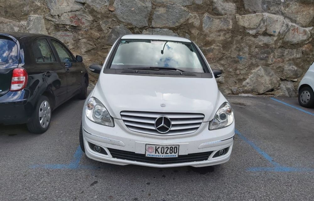 Es tracta d’un Mercedes model B180 de color blanc i d’una desena d’anys d’antiguitat. En concret, per si algú el veiés, la matrícula del cotxe en qüestió, matriculat òbviament al Principat, és K0280.