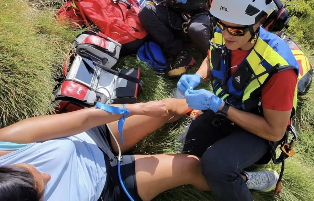 L’actuació l’han cobert dos bombers del GRM i un bomber de la secció d’infermeria; la muntanyenca ha estat traslladada en helicòpter per ser atesa correctament al SAAS