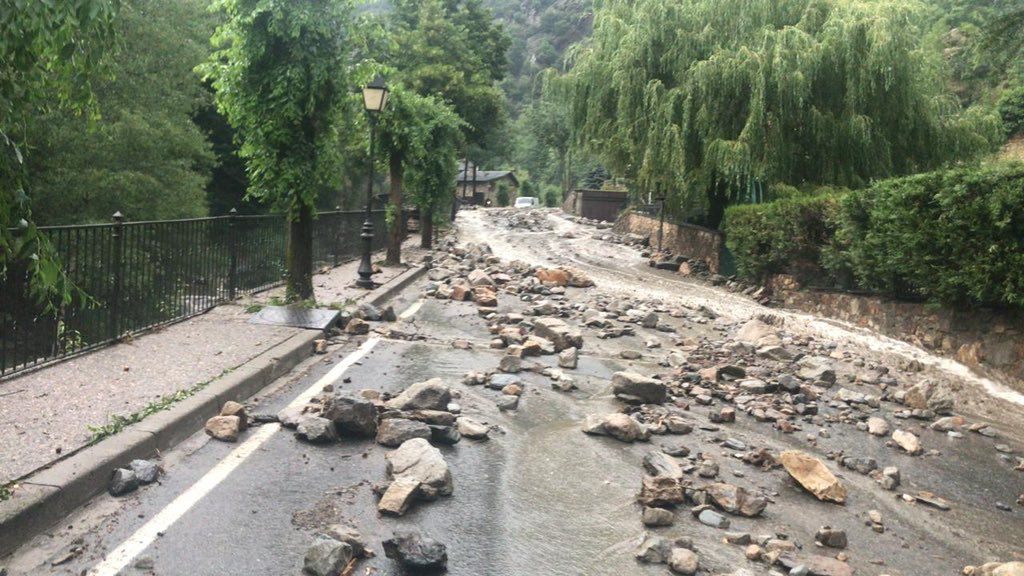 Pedres i rocs arrossegats fina a la carretera.