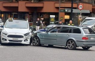 Topada entre un taxi i un turisme a la rotonda dels Marginets