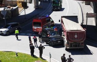 Topada entre un totterreny i un camió sota la rotonda del túnel del Dos Valires a Encamp