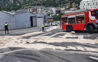 El vessament ha provocat el tall del carril de baixada de la calçada i també del carrer annex que comunica amb la carretera general 1, a tocar de les oficines d’Andbus, que és on s’ha detingut el camió. Els bombers han fet servir sepiolita per netejar la zona, un mineral el qual té propietats absorbents quan es trenca el gra. No obstant això, fins que faci efecte i es netegi la carretera passarà “una bona estona”, segons els efectius del cos.