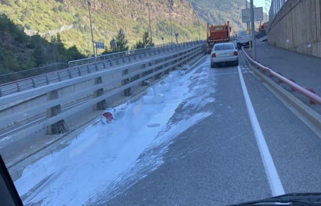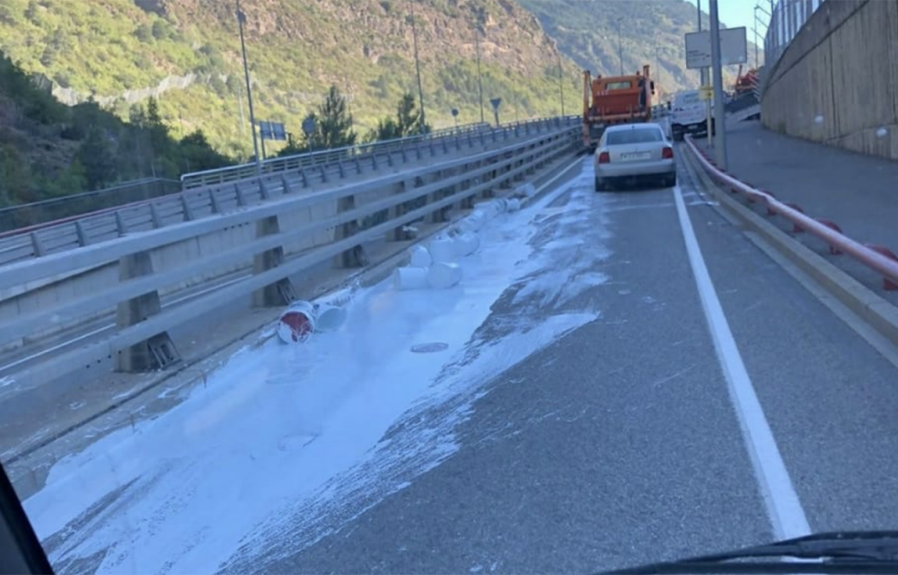Els fets han tingut lloc cap a les 9:30 del matí. A l’escenari, s’han traslladat agents de circulació de la parròquia d’Encamp i efectius del cos de bombers, que han descartat netejar amb aigua per la proximitat que hi ha amb el riu. Així doncs, faran servir un producte absorbent. Encara es desconeix si s’ha habilitat un pas alternatiu o pel contrari la circulació és fluida al carril afectat.