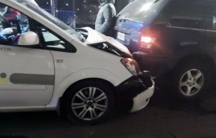 Un Jeep Grand Cherokee 4x4 hauria frenat degudament per deixar pas a un vianant que volia creuar la via. També s’ha aturat convenientment un taxi (Opel Zafira). Però el que no va estar prou atent va ser el conductor d’un Kia Cerato. No va parar a temps i va picar contra el taxi, que al seu tomb es va encastar al totterreny.