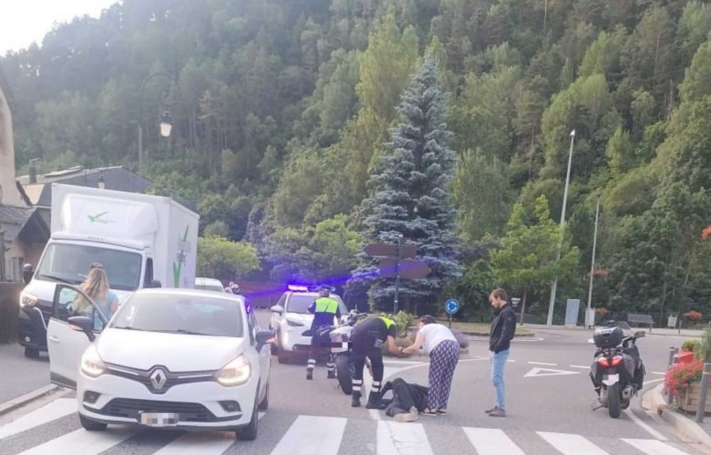En efecte, el vehicle implicat, matriculat al Principat com la motocicleta, s'ha aturat per deixar passar un vianant i el motorista no ha estat prou observador com frenar amb temps i ha acabat picant contra el cotxe. El motorista és un home resident de 37 anys.