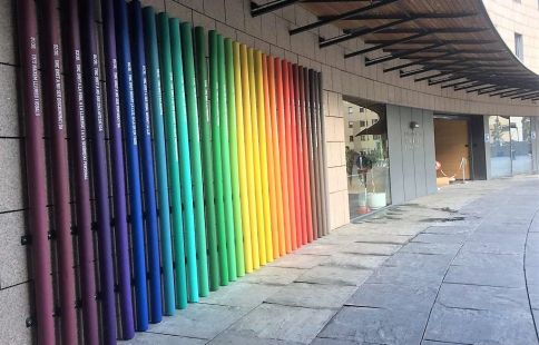 A l'Hospital s'hi han instal·lat una trentena de barres acolorides que mostren els diferents articles del document de les Nacions Unides