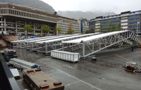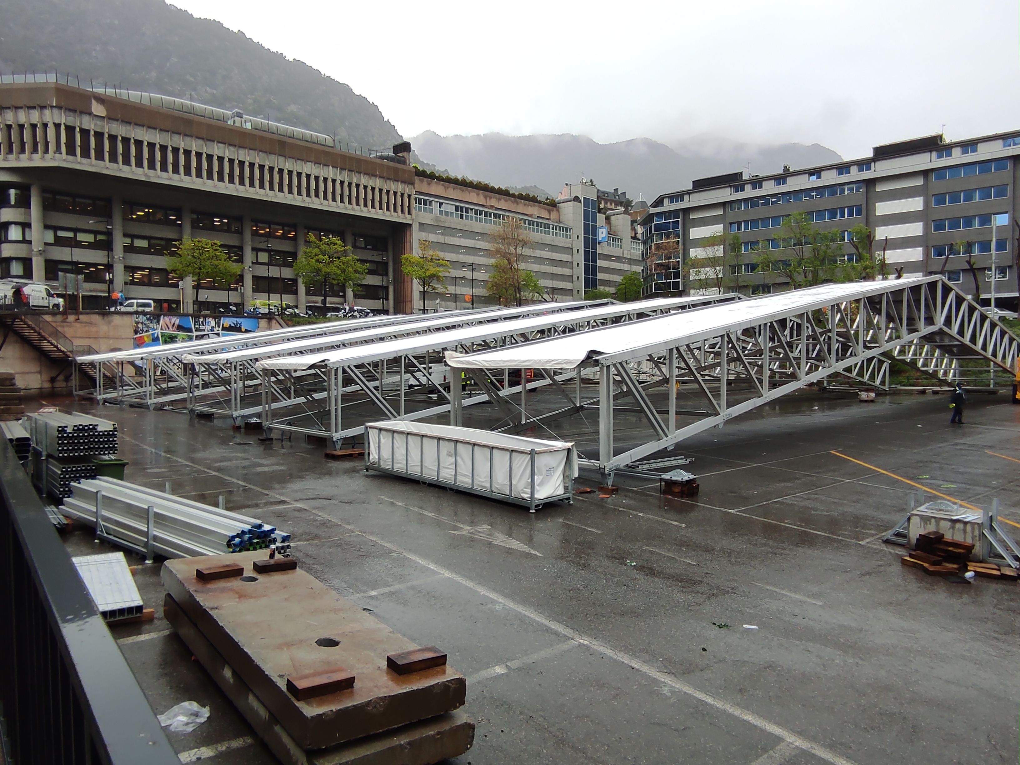 S’està muntant l’estructura del recinte que ocuparà durant quatre mesos l’aparcament adjacent a l’antiga plaça de braus
