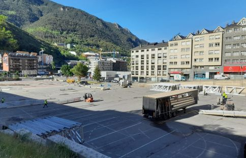 Algunes de les peces que formen part de l’esquelet de la carpa ja han arribat i estan a l’aparcament de Prada Casadet. Aquest dilluns al matí els operaris ja s’havien posat a treballar de valent per tal de tenir muntada l’estructura aquest mes de maig. Segons informen des d’Andorra Turisme, durant el mes de juny es farà el muntatge de l’escenari i la graderia.