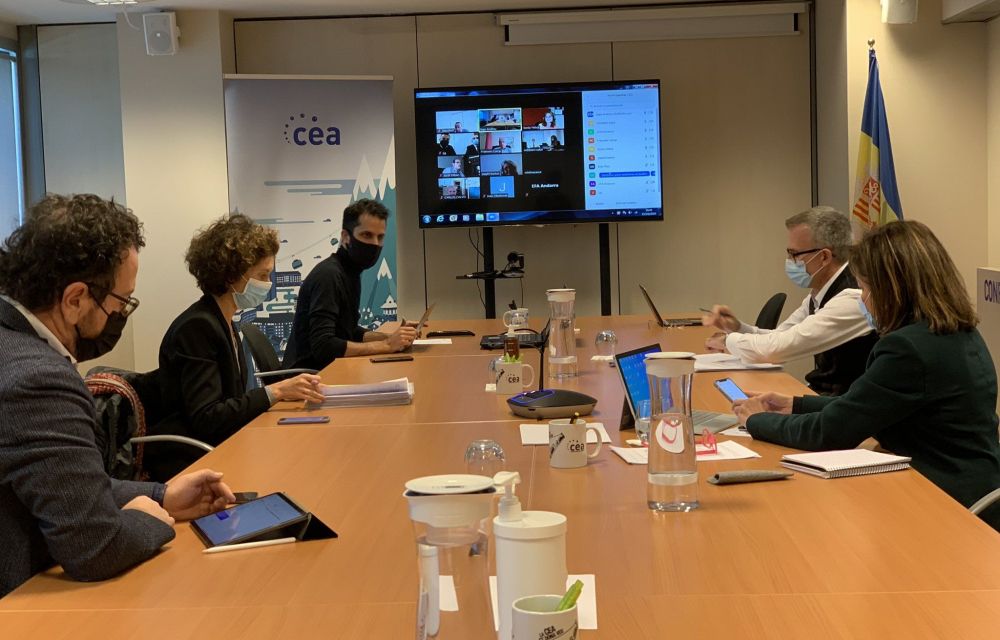 El ministre de Salut, Joan Martínez Benazet, juntament amb la ministra de Turisme, Verònica Canals, la ministra d’Afers Exteriors, Maria Ubach, així com els secretaris d’Estat de Justícia i Interior, Joan Antoni León, i la de Salut, Helena Mas, han mantingut aquesta tarda una reunió de format mixt telemàtic i presencial (en les instal·lacions de la CEA) amb diversos operadors turístics del país. Hi havia representants d’associacions sectorials com Ski Andorra, la Unió Hotelera, Autèntics Hotels, l’Associació d’Empreses d’Allotjament Turístic, l’Associació d’Agències de Viatge i l’Associació Eix Central, la Cambra de Comerç, Indústria i Serveis i l’Empresa Familiar Andorrana.