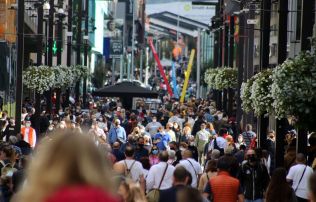 Aglomeració de gent a l'avinguda Meritxell, a tocar de la Rotonda.