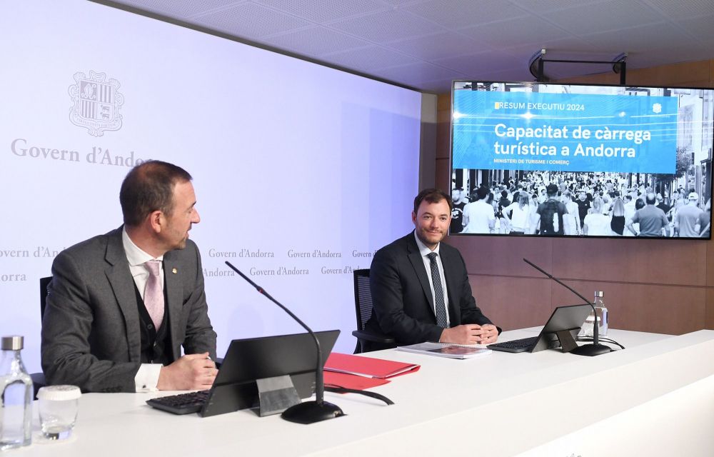 El ministre de Turisme, Jordi Torres, i el coordinador de l’estudi de capacitat de càrrega turística que ha elaborat BMS Consultoria Estratègica, Jose Gismero, han presentat aquest dimarts els resultats de l’anàlisi que es va dur a terme durant l’últim semestre del 2024. El ministre ha remarcat que es tracta d’un estudi “dinàmic” que aporta una foto de la situació que tenim a dia d’avui. “Ens permet tenir una foto realista de com està el sector”, ha assenyalat Torres.