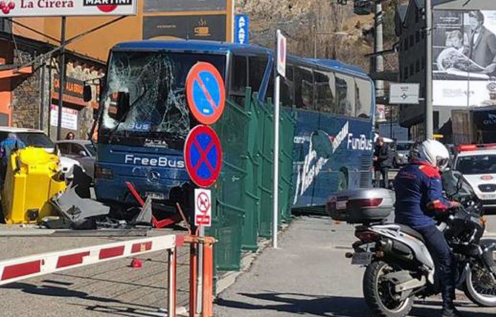 L'autocar, que també s'ha emportat alguns senyals de trànsit i ha acabat aturant-se després de les diverses topades, ha patit danys sobretot al vidre i a la zona lateral dreta. Patrulles de la policia i agents de circulació de la parròquia s'han personat fins al lloc del fets. Testimonis presencials han assegurat que hauria anat de poc que no s'hauria produït una desgràcia.