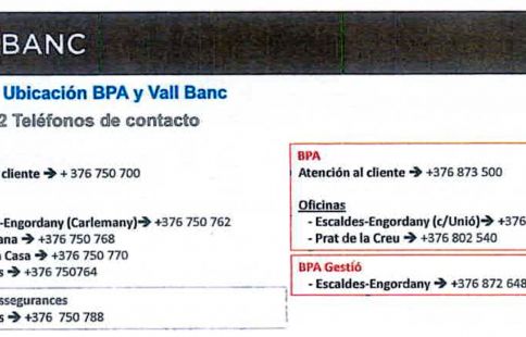 D’entrada, però, la realitat imminent és el procés de migració, que agafa tota la seva intensitat aquest cap de setmana. L’equip informàtic del banc en ple treballarà tot el cap de setmana, i també personal d’altres departaments, per fer el trànsit i la separació definitiva entre BPA i Vall Banc. També s’han de separar físicament espais i arxius documentals. Segons el guió intern al qual va tenir accés l’Altaveu, es preveu que hi hagi personal que doni servei a clients de les dues entitats, però en el document ja s’adverteix que s’haurà d’anar molt en compte, per exemple, alhora d’atendre el telèfon o de fer alguna trucada de quina extensió es fa. Vall Banc té una numeració telefònica diferent. Per posar un exemple, mentre el número d’atenció al públic del banc pont és el 376 750700 l’homònim de BPA és el 376 873500.