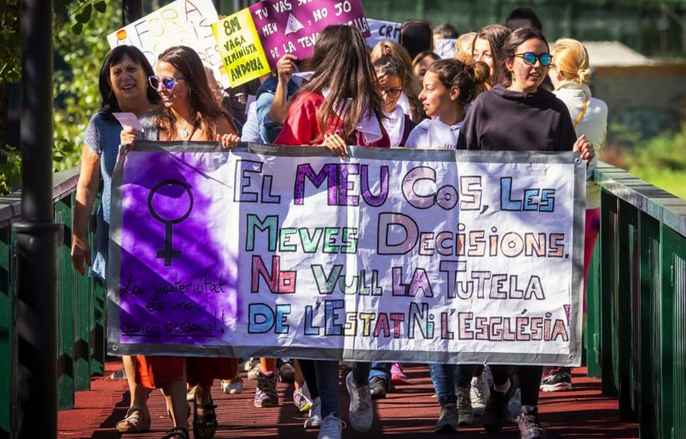 En la pancarta que, per dir-ho d’alguna manera, presidia la marxa s’hi podia llegir ‘El meu cos, les meves decisions. No vull la tutela de l’Estat ni l’Església’. I hi afegia encara ‘la maternitat és una decisió personal’. Les referències crítiques a l’Església i el bisbat d’Urgell i l’arquebisbe i Copríncep, Joan Enric-Vives també eren ben presents amb emblemes com ara ‘Fora els rosaris dels nostres ovaris’ o ‘Tu vas sortir del meu cony, no jo de la teva capella’.