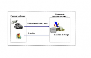 D'aquesta manera, les càmeres situades sobre els vials de pas capturen la imatge de la matrícula i dels vehicles, i es connecten amb els servidors locals i centrals de l'Agència Tributària. El dispositiu de vídeo intel·ligent es combina amb les bases de dades de l'AEAT, permetent un contrast automàtic de la informació capturada 'en viu' i les dades de què disposa l'Agència.