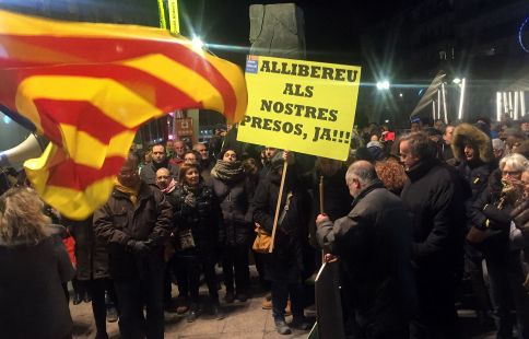 Entre pancartes en què s’hi podia llegir, per exemple, ‘Allibereu als nostres presos, ja!!!’ o ‘Lluitarem fins que sigueu a casa i lliures!’, i crits com “llibertat presos polítics” o “independència”, el cant de ‘L’estaca’ o ‘Els segadors’ per part de tots els concentrats han posat el punt final a l’acte central de la protesta.