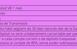 La resolució estableix que els clients que passin ara a Vall Banc podran accedir a un 20% del capital que tinguin dipositat en el mateix moment de ser traspassats. Però hi ha alguns condicionants. Així, el límit màxim de diners que es podran retirar en un primer moment serà de 25.000 euros. Si el saldo que es tingui a BPA en el moment de la transmissió és igual o inferior a 15.000 euros, es podrà recuperar íntegrament des del primer dia que es faci efectiu el traspàs. A partir de 15.001 euros es recupera el 20%. A la resta del dipòsit no s’hi podrà accedir fins al cap d’un mes.
