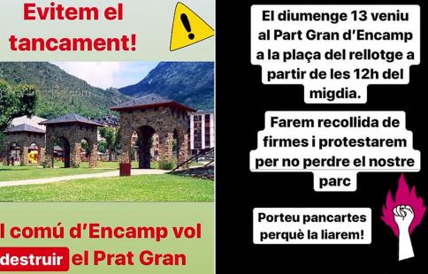 Es preveu que sigui un acte força sorollós i els organitzadors, a través de les xarxes socials, demanen que les persones que s’acostin al parc ho facin amb pancartes per donar més visibilitat a la queixa. També es preveu recollir signatures, que previsiblement es duran al comú, per reclamar que no es tanqui el parc. En principi, el comú d’Encamp té previst aprovar dijous que ve per la via d’urgència la contractació dels treballs necessaris per demolir aquells habitacles bastits sobre la propietat de casa Areny i que s’han de suprimir per tornar l’espai al seu estat inicial vist els acords contractuals que es van establir al seu dia.