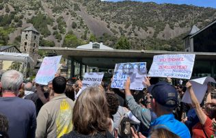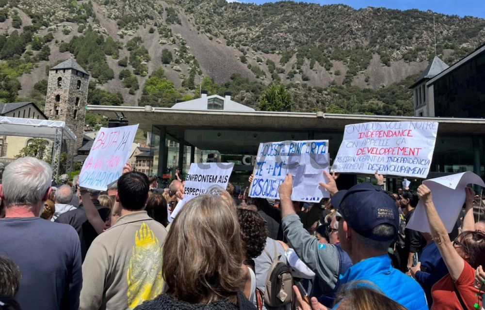 Crits com ‘ja n’hi ha prou’, ‘fora, fora’ i fins i tot ‘dimissió’ es deixen sentir de valent igual com pancartes que fan referència a la situació de dificultat per accedir a habitatge de lloguer assequible i, en general, a pisos en condicions i a un preu assumible per a la classe treballadora del país. En molts punts de la plaça no se sent res de res mentre Espot parla de la pandèmia o agraeix l’esforç de l’Elisi per tal de fer accelerar l’actuació a l’RN-20 per poder reobrir la carretera amb més celeritat de la prevista.