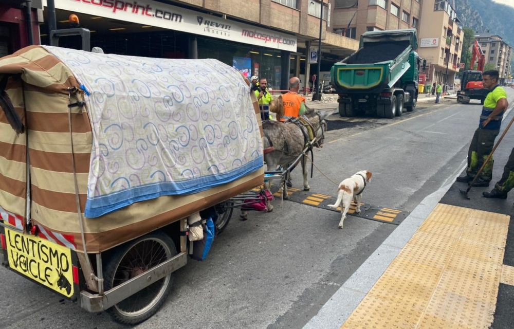 El viatge el fa a peu i amb molta paciència. De fet, i després de travessar la frontera hispanoandorrano al tomb de les set de la tarda, el propietari de l’animal (i també del gos que els acompanya) no té excessiva pressa en travessar el Principat. Pensa fer estada al país -no ha transcendit on- entre quatre i cinc dies. Anirà avançant tot continuant amb el trajecte que té traçat.