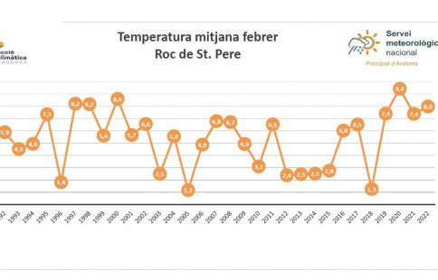 De fet, només ho superen quatre registres: el del 2020 amb una mitjana de 9,4; els 8,2°C del 1997 i 1998 i els 8,6°C del 2000. Un fet que queda corroborat amb una temperatura diària per sobre de la mitjana per aquesta època de l'any; només un dia s'ha situat clarament per sota, concretament el 19 de febrer amb 4°C.
