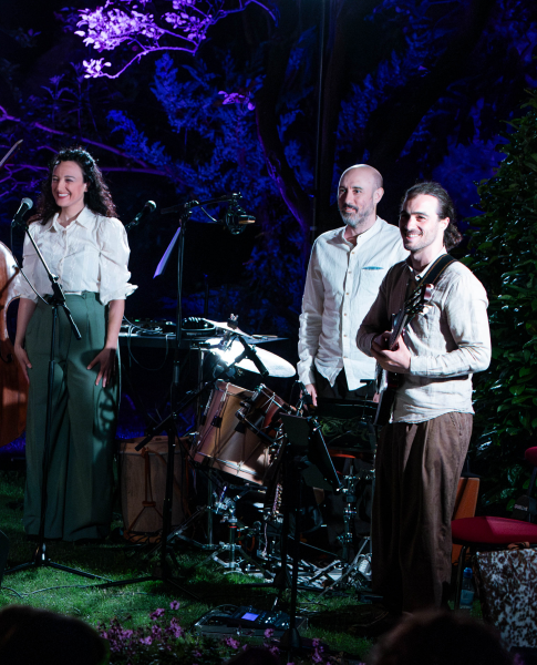 D: La música és bàsicament guitarra, veu i percussió. Després fem servir electrònica, també, per transformar aquests instruments. La veu, és la de la Laura; la guitarra, la poso jo; i el percussionista, que és el tercer membre, és el Jonás Gimeno. És percussionista folk tradicional, i és el que li dona també una sonoritat molt particular al projecte.