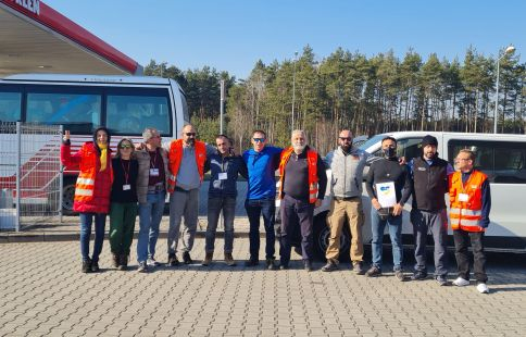 En una de les parades del comboi de Creu Roja andorrana, en una àrea de servei a l'autopista 4 al sud-est de la localitat alemanya d'Auerswalde, hem coincidit amb una altra expedició humanitària amb objectiu Polònia. Es tracta d'un grup de policies espanyols que encaren la recta final del seu trajecte amb destinació a Varsòvia. Han recorregut més de 3.000km per portar ajuda humanitària als refugiats de la guerra en territori ucraïnès. La seva voluntat és retornar a Madrid, Saragossa i el País Basc amb 40 desplaçats del conflicte bèl·lic.