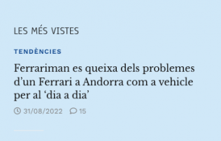 El "EGONDORRANO" se ha acabado. Y está en manos de "TODOS AQUELLOS QUE TENEMOS DERECHO A VOTO", que ésta es otra, acabar de una maldita vez con toda ésta panda de inútiles, lo han demostrado tantas veces que daría para escribir toda una Enciclopedia Andorrana de varios miles de tomos, que se han apoderado del poder, aprovechándose de una manera de votar ancestral y totalmente obsoleta, y que hoy en día, en pleno siglo XXI, no hay por dónde cogerla porque no tiene ni pies ni cabeza.