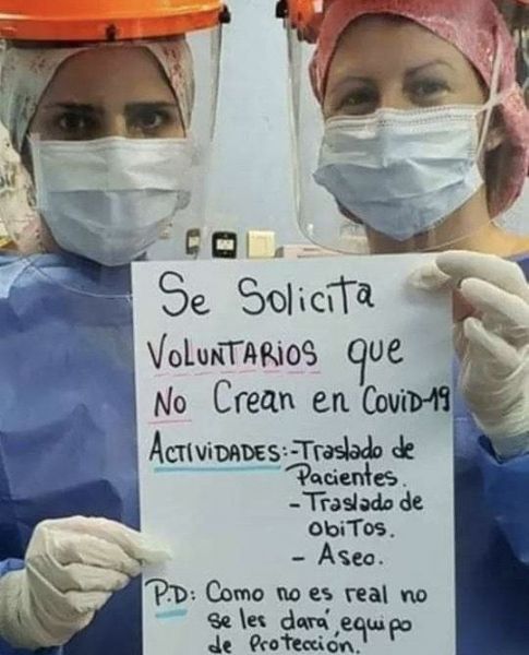 Y si no me creen, vayan de voluntarios a cualquier hospital, a cualquiera de sus UCIs, o de sus UVIs, y comprueben con sus propios ojos lo que allí les ocurre a los que desgraciadamente han pillado el Coronavirus.