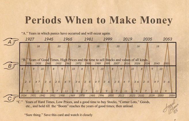 Buenos Tiempos: Años que Benner identificó como tiempos de precios altos y el mejor momento para vender acciones, valores y activos de todo tipo.